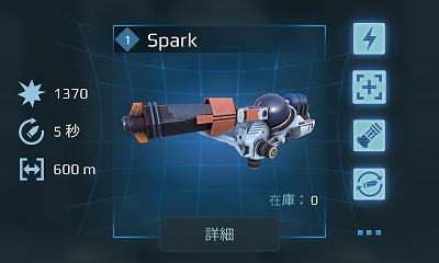 ・軽量武器。エネルギー属性、照射型ロックオン武器。射程600、装弾数100セル、リロード時間5秒。
