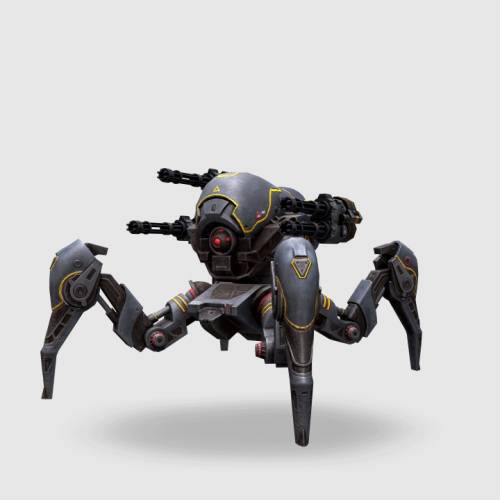 ・見た目はWeyland(ウェイランド)、Fujin(フウジン)に似た曲面の目立つ4脚型であるが、機体正面の大きな赤いセンサーや、先細りになった細い足先が節足動物的な印象を与える。装甲自体は曲面的ではあるものの、機体各部にはパイプやシリンダーと言ったメカニカルな部品が多数見受けられる。ジャンプする際は脚を真っ直ぐ下へ伸ばす。