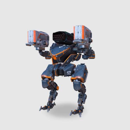 ・細い脚部、正面に構えた菱型の盾パーツが特徴的な中量機体。盾の裏側にはポール上のセンサーがあり、その後方には盾を支えるアームや中量武器のジョイント部がある。ファングアウト使用時は盾部分を後方へ戦闘機の尾翼のように立て、格納されていた中武器を前方へ展開する。機体各所に細かなマーキングが目立ち、中量武器ジョイント部には三角形の!マーク、膝部にはNO STEP、頭部右側面、股関節部の左には12と書かれている。