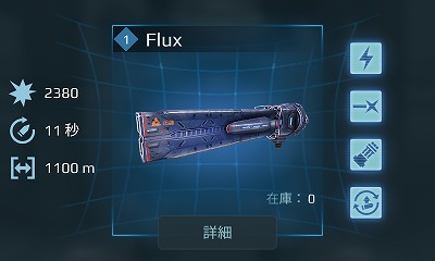 ・Fluxの一般的には「流れ」、科学用語としては「溶剤」を意味する。レーザーを流れに見立てた、もしくは熱によって敵装甲を溶かすことから溶剤、という意味なのかもしれない。