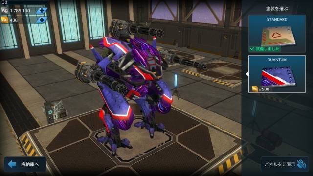 ・軽量武器3つを装備可能で、アビリティ「ハント」による速度上昇・ステルス能力を持つ中量機体。価格は10000コンポーネント。