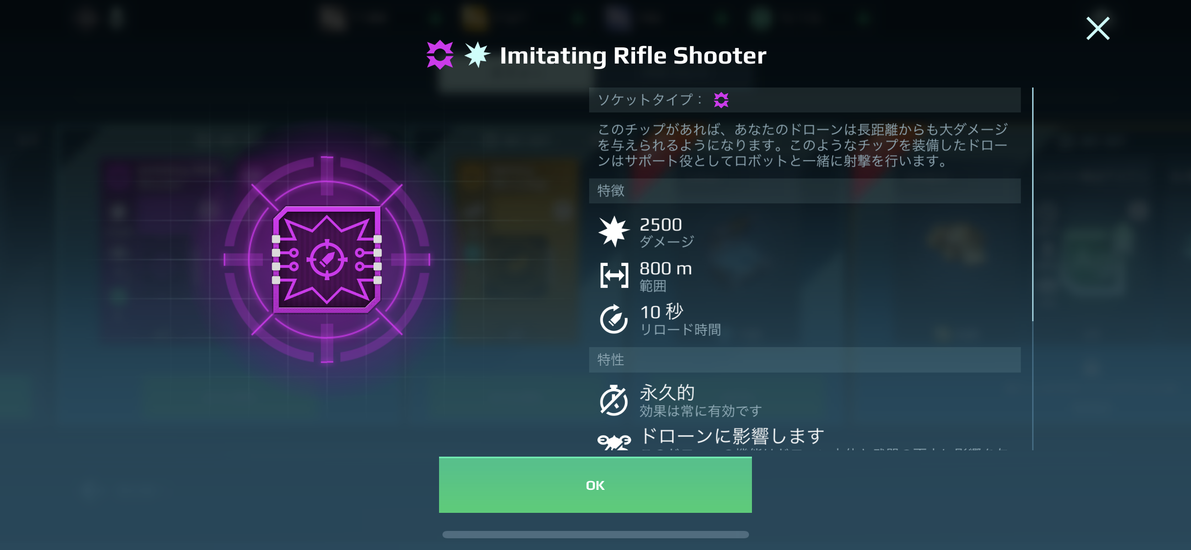 ドローンを使うにはまずレベルを27以上にする必要がある(レベルについては大したことでないが、情報求む)。ドローンにはチップというものがあり、それはそのドローンにどういうアビリティを持たせるかを決める要素である。