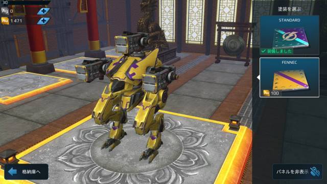 ・1000Auで購入可能。軽量武器3つを装備可能な軽機体(※要検証)。アビリティ、ダッシュを持つ。