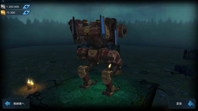 | 背面にアビリティの実弾砲1つを格納。 | 中機体。装備スロットは重1軽2。 |