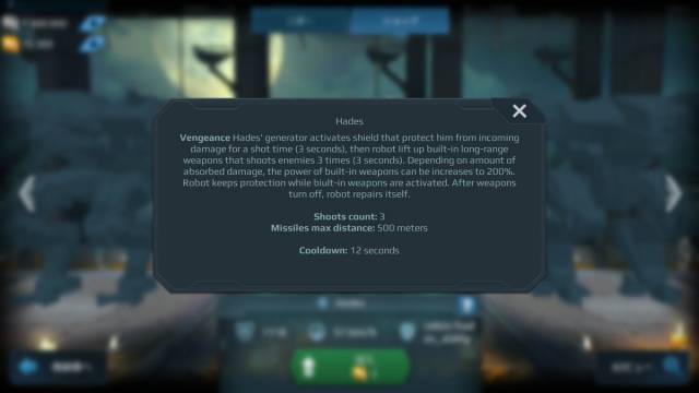 アビリティ起動時は射撃待機時間(3秒間)の間ダメージから身を守るシールドを作動させ、その後またはアビリティボタンで敵を3秒間射撃する組込武器(実弾属性)を起動、発射する。