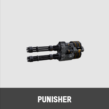 ・軽量武器のPunisher(パニッシャー)を上下に重ねた形状。射撃時には上下のガトリング砲身が回転し、発射時バレルを入れ替えながら連射する。上面からは空薬莢が大量に排莢される。3秒以上発射し、連射速度が向上した状態では砲身が橙色に光った状態となる。マガジンリロード時にはマガジンと接続しているホルダーが開き、マガジン部分が下方へ移動する。リロード後、マガジン部分が元の位置に戻り、ホルダーが閉じる。