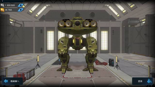 | 背面にアビリティの実弾砲1つを格納。 | 中機体。装備スロットは重1軽2。 |