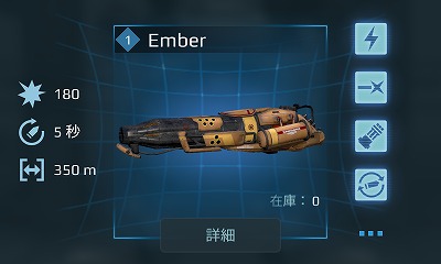 ・エンバーとは、 残り火、余燼を意味する。火炎放射器である当武器に合った名称と言える。