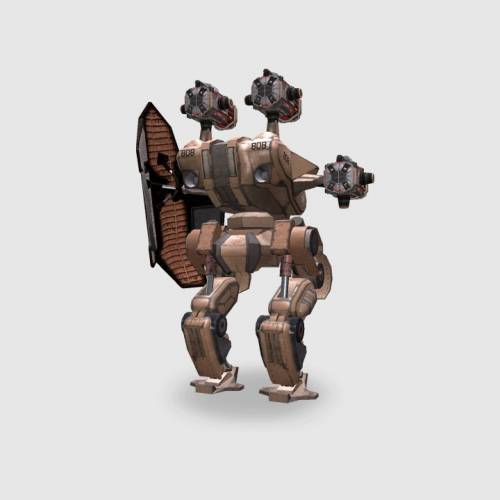 ・初期に購入できる機体の中では、比較的人型に見立てられることが多く、肩のようなパーツがあるのが特徴。機体正面左右に小さな黒の髑髏マーク、後部左右に808の文字、機体側面には☆マークがある。頭部上面のみ材質が違う装甲なのか、他の部分と色が異なっている。