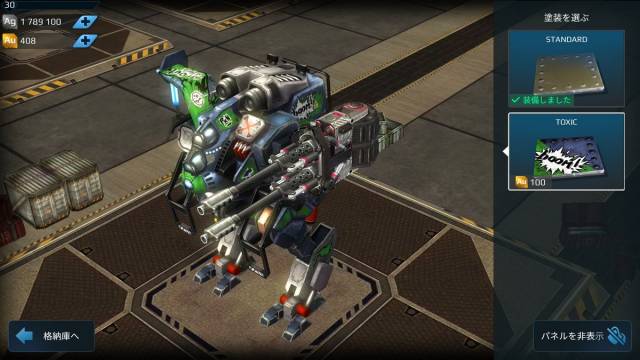 | + |  | 塗装 | | TOXIC (100Au) |  |  |  | 紺に緑のファイアパターン。描かれている文字は「Get Out of Here」「PxN」「boom!」と顔文字 |