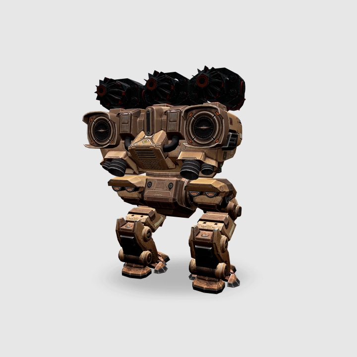 | ECC Thunder(サンダー)x3 | 接近戦における異次元の火力で目の前の敵を蒸発させる。10発撃って敵機を倒せないことはない。すさまじい火力で生半可な盾は吹っ飛ばす。鈍足さは耐久である程度カバー可能。とはいえ遠くの敵に撃たれないよう隠れながら進もう。サンダー2つでもかなりの火力が出るため、牽制用の中距離武器を持たせたり、アンサイルを置いたりする例も見られる。守りたいビーコン付近で遮蔽物に隠れ、敵を待ち伏せする、フォートレス(要塞)スタイルは非常に強力。 |