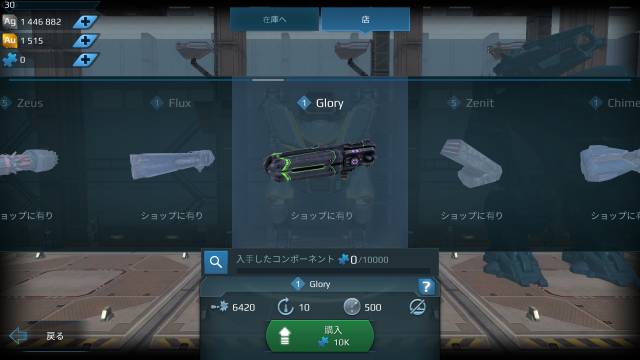 ・エネルギー属性の散弾を高速で発射する、至近距離向けの面攻撃武器。スペック通りの火力を引き出すには、敵機に接近する必要があるが、破壊力と連射力からダメージ効率は高い。一方で、遠距離では威力が見込めない。面攻撃ではあるものの、弾は横方向に線上に拡散する。
