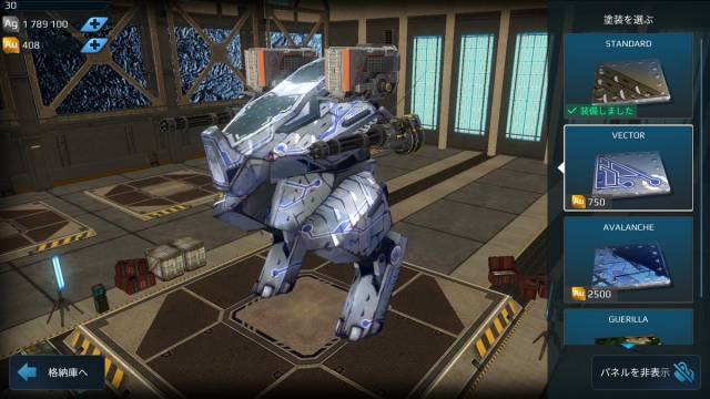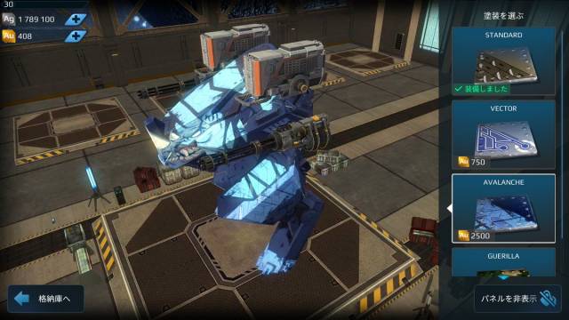 | VECTOR(750Au) | AVALANCHE (2500Au) |  |  | | 白青基調に、全身に基盤のような電子的なイメージの青色の模様が入る | サイを模したノーズアート。凶暴な顔つき。尚アヴァランチとは雪崩の意味 |